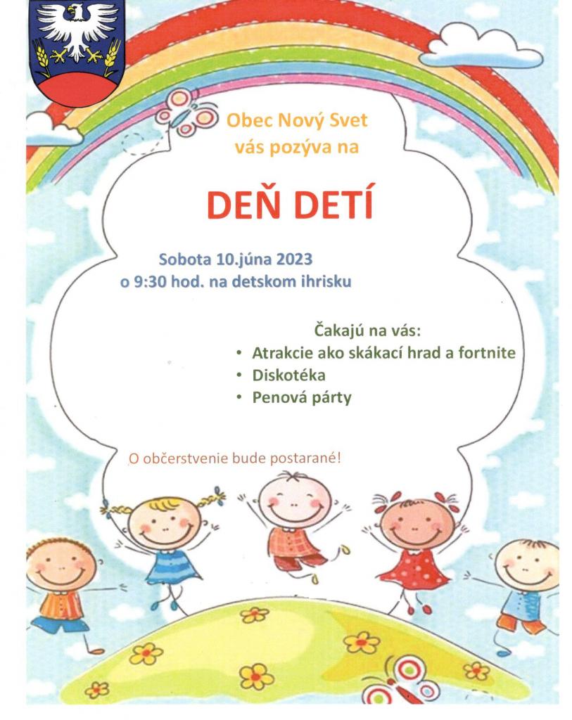 MDD 2023 Obec Nový Svet pozýva deti a rodičov na DEŇ DETÍ.